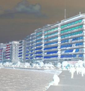 O Stephen James Kennedy “είδε” το θαλάσσιο μέτωπο της Θεσσαλονίκης ως μια τεράστια θεατρική σκηνή, ένα θαλάσσιο αστικό θέατρο όπου θα γίνονται εκδηλώσεις και εικαστικές προβολές τις οποίες θα μπορούν να βλέπουν τόσο οι πεζοί όσο και οι επιβάτες των πλοίων. Η “σκηνή” θα διαμορφώνεται κάθε φορά διαφορετικά, ανάλογα με τις διαφορετικές τεχνικές φωτισμού και μπορεί να είναι είτε η παλιά παραλία, η προκυμαία είτε η ίδια η θάλασσα, ενώ οι θεατές θα γίνονται ταυτόχρονα και πρωταγωνιστές ενός έργου. Σε περιόδους σημαντικών εκδηλώσεων (όπως σε επετείους, στη ΔΕΘ, το Φεστιβάλ Κινηματογράφου ή Βιβλίου) το “θαλάσσιο αστικό θέατρο” θα μπορεί να γίνεται το επίκεντρο του ενδιαφέροντoς, ενώ αυτό το τόσο ιδιαίτερο θέατρο θα αποτελέσει “σήμα κατατεθέν” της πόλης για την φιλοξενεία σημαντικών πολιτιστικών εκδηλώσεων, ψηφιακών προβολών μεγάλης κλίμακας, ή εγκαταστάσεων που θα δημιουργούν εικαστικά έργα μέσω του φωτός.5. Ψηφιακές τέντες