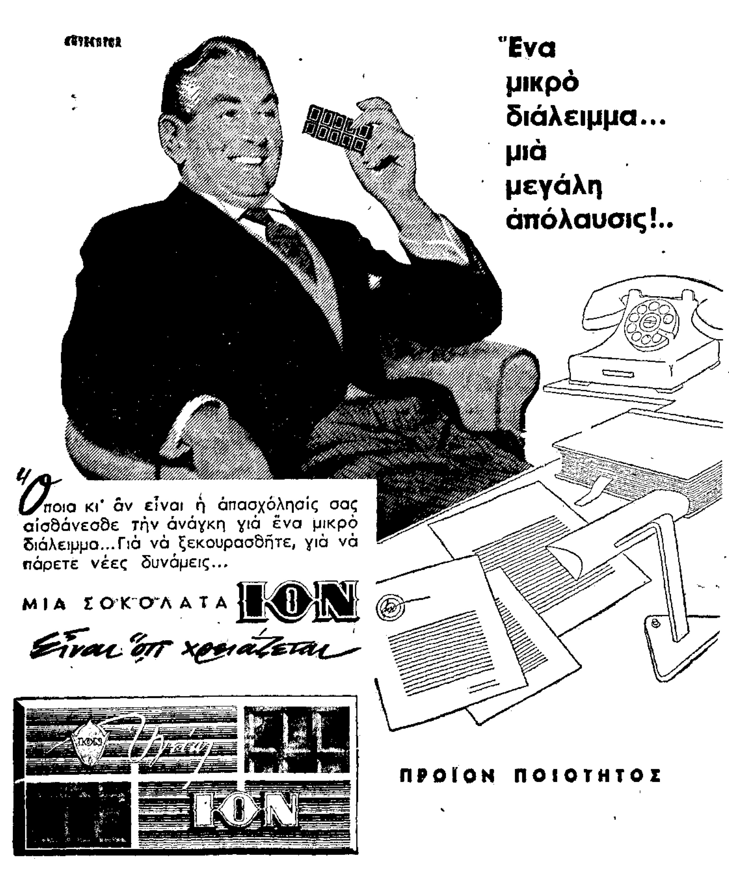 Ένα μικρό διάλειμμα, μια μεγάλη απόλαυσις… sofia / 30/09/2014 Διαφήμιση στη «Μακεδονία» του 1965 Βαθμολογία:Μου αρέσει! Φόρτωση...