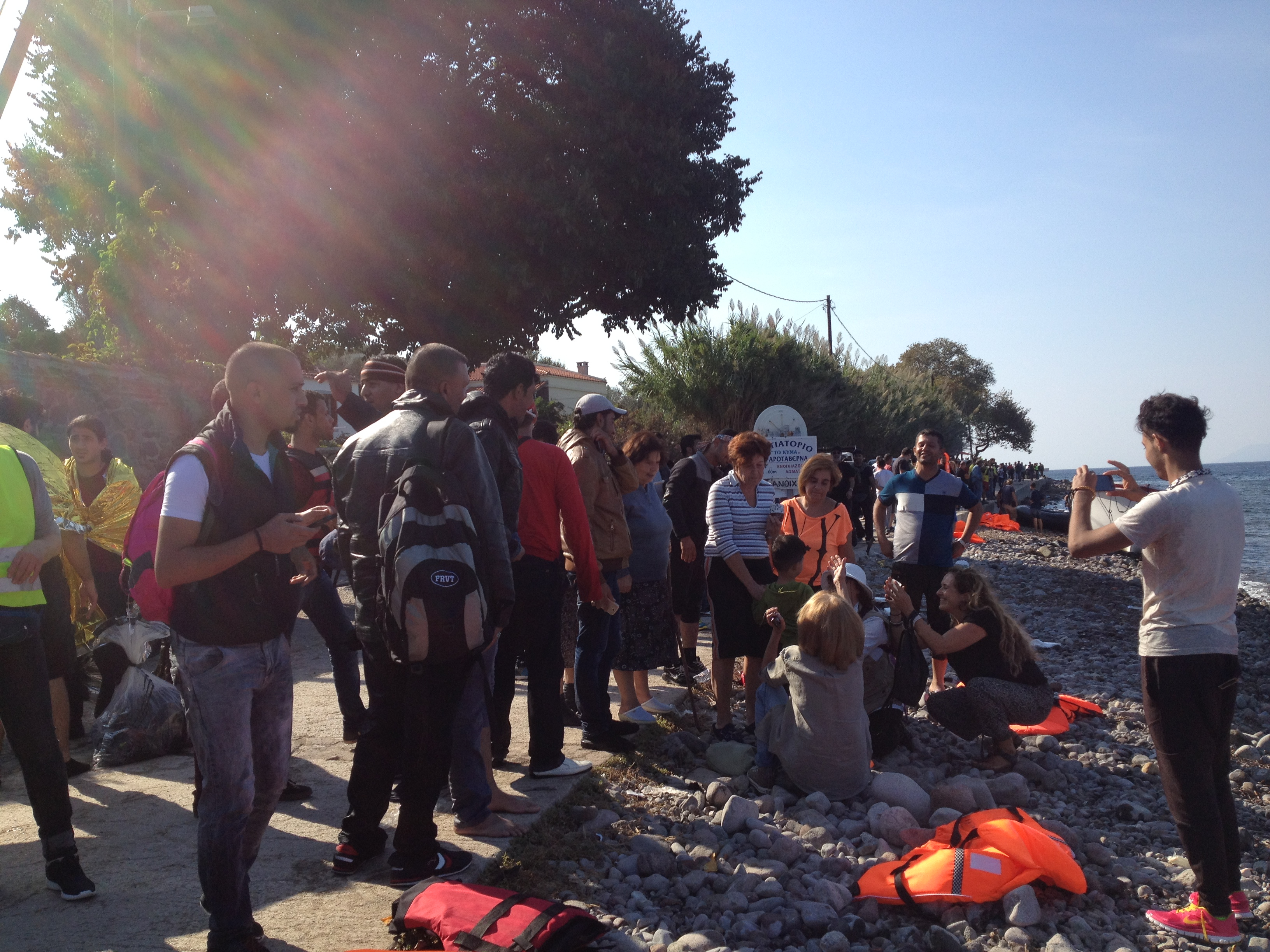 Στην παραλία της Συκαμνιάς οι βάρκες καταφθάνουν η μια μετά την άλλη, μέρα μεσημέρι. Πριν φτάσουν στη στεριά, οι άνθρωποι αρχίζουν να σφυρίζουν και να ζητωκραυγάζουν. Επικρατεί πανζουρλισμός με εικονολήπτες και φωτογράφους- Έλληνες, Γάλλους, Ισπανούς, Ολλανδούς- να πασχίζουν για ένα καλό πλάνο. Κάποιος βουτά στη θάλασσα και τραβά από εκεί με το κινητό. Με το που πλησιάζουν οι βάρκες, εθελοντές βουτουν στη θάλασσα κι αρχίζουν να βγάζουν πρώτα τα παιδιά.